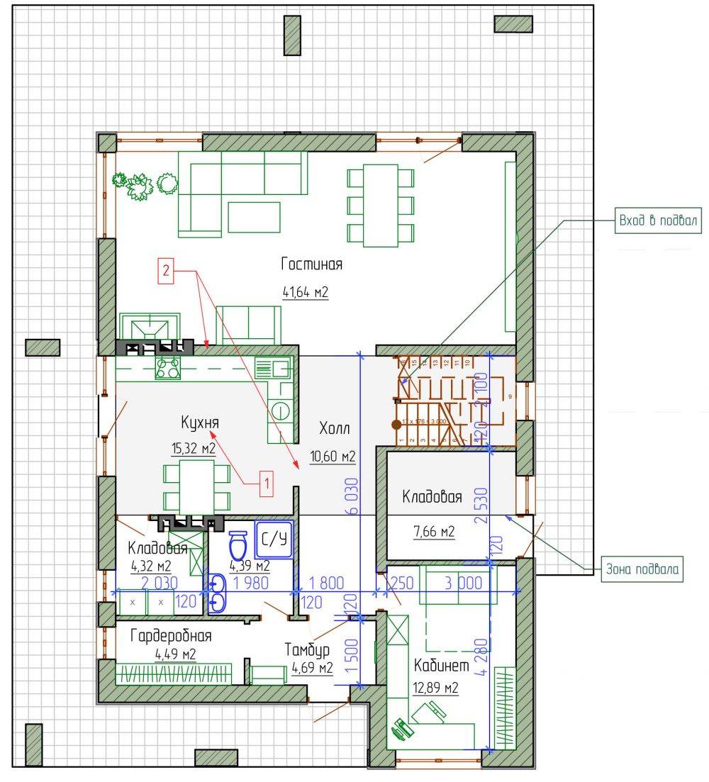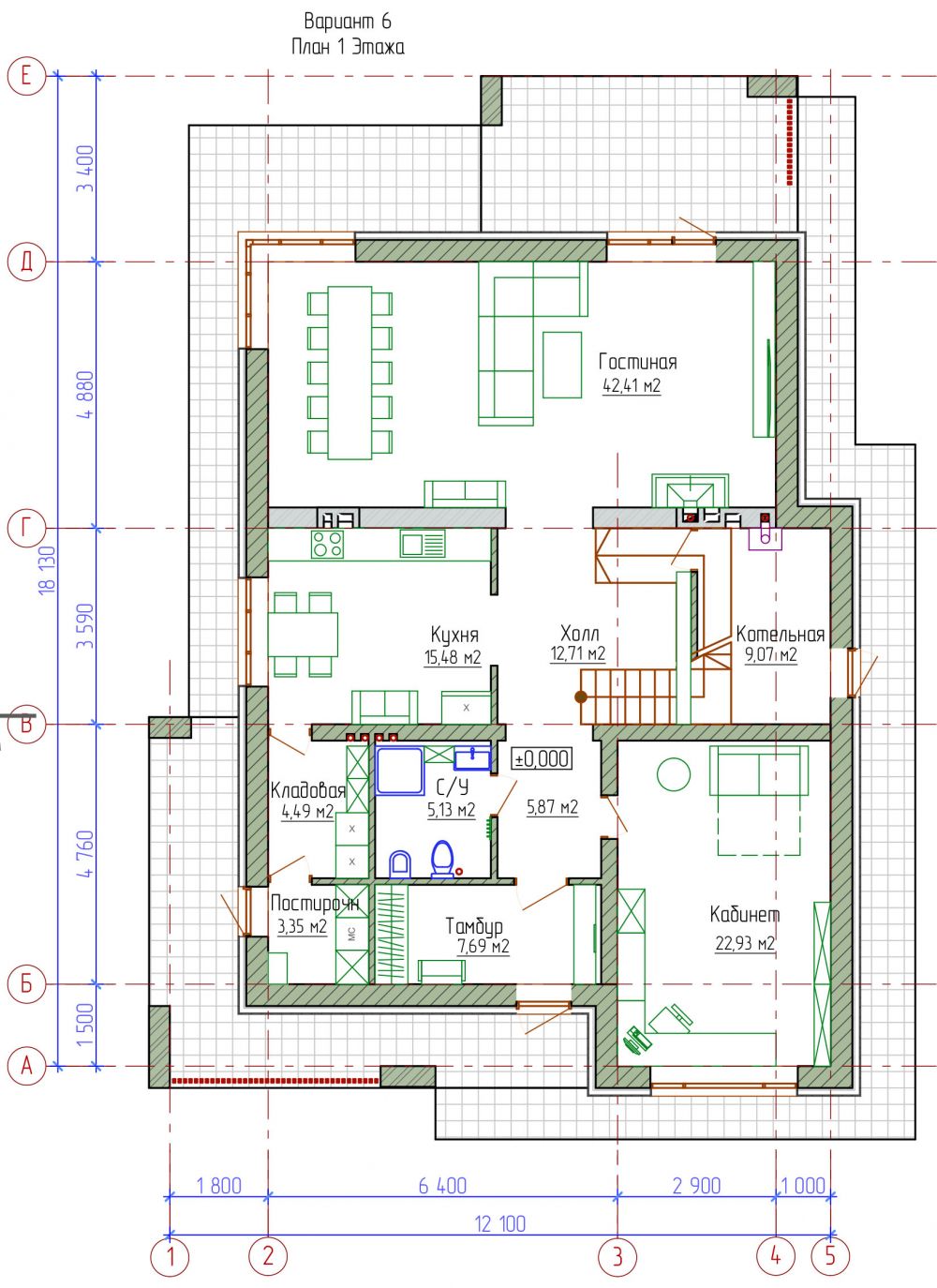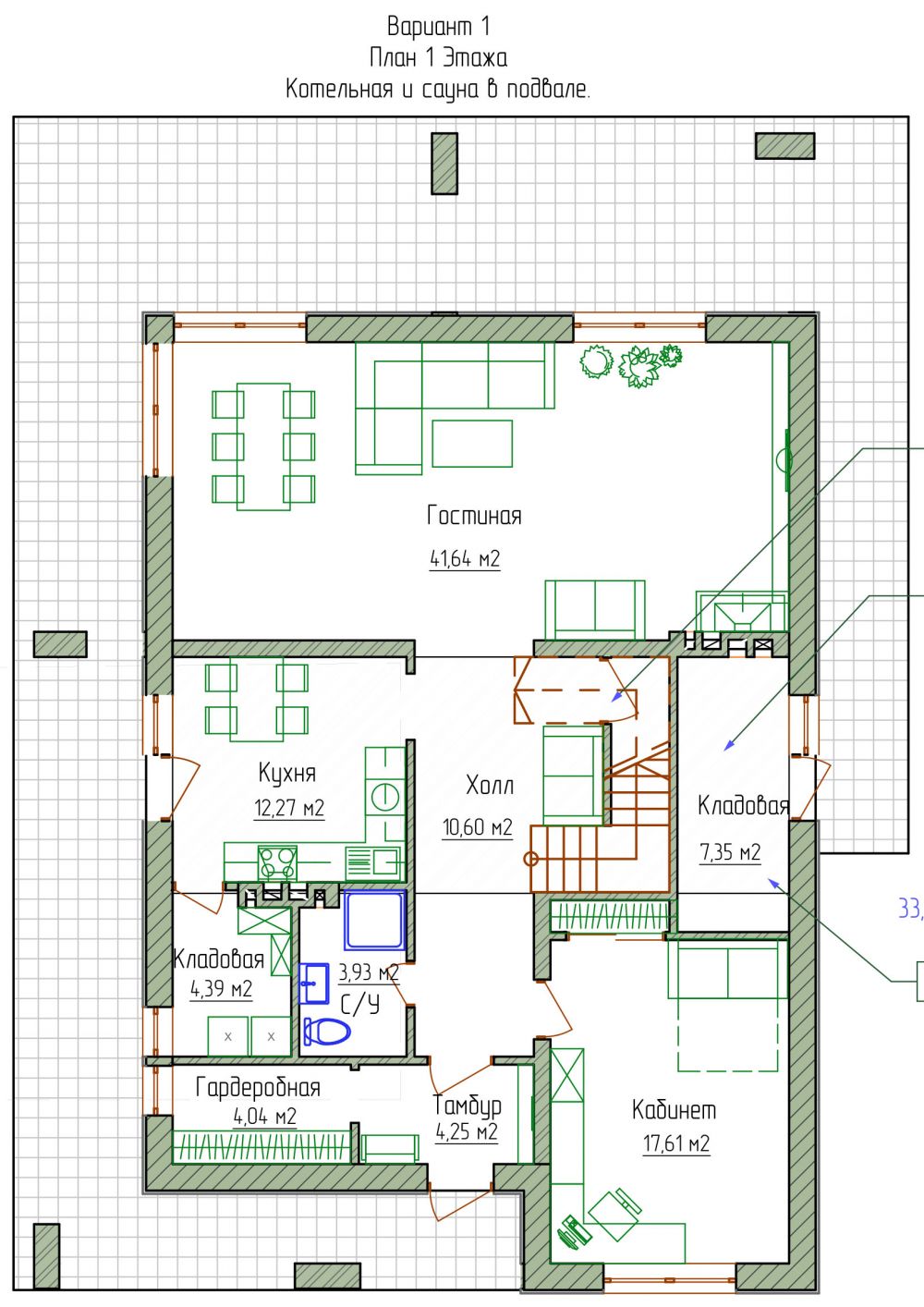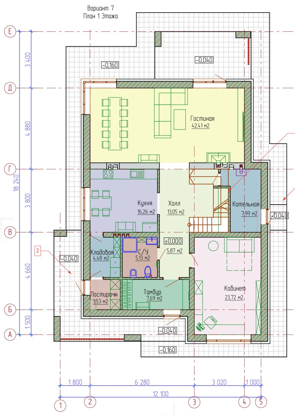 - пол 1-го этажа выполнен утеплённым, по грунту;