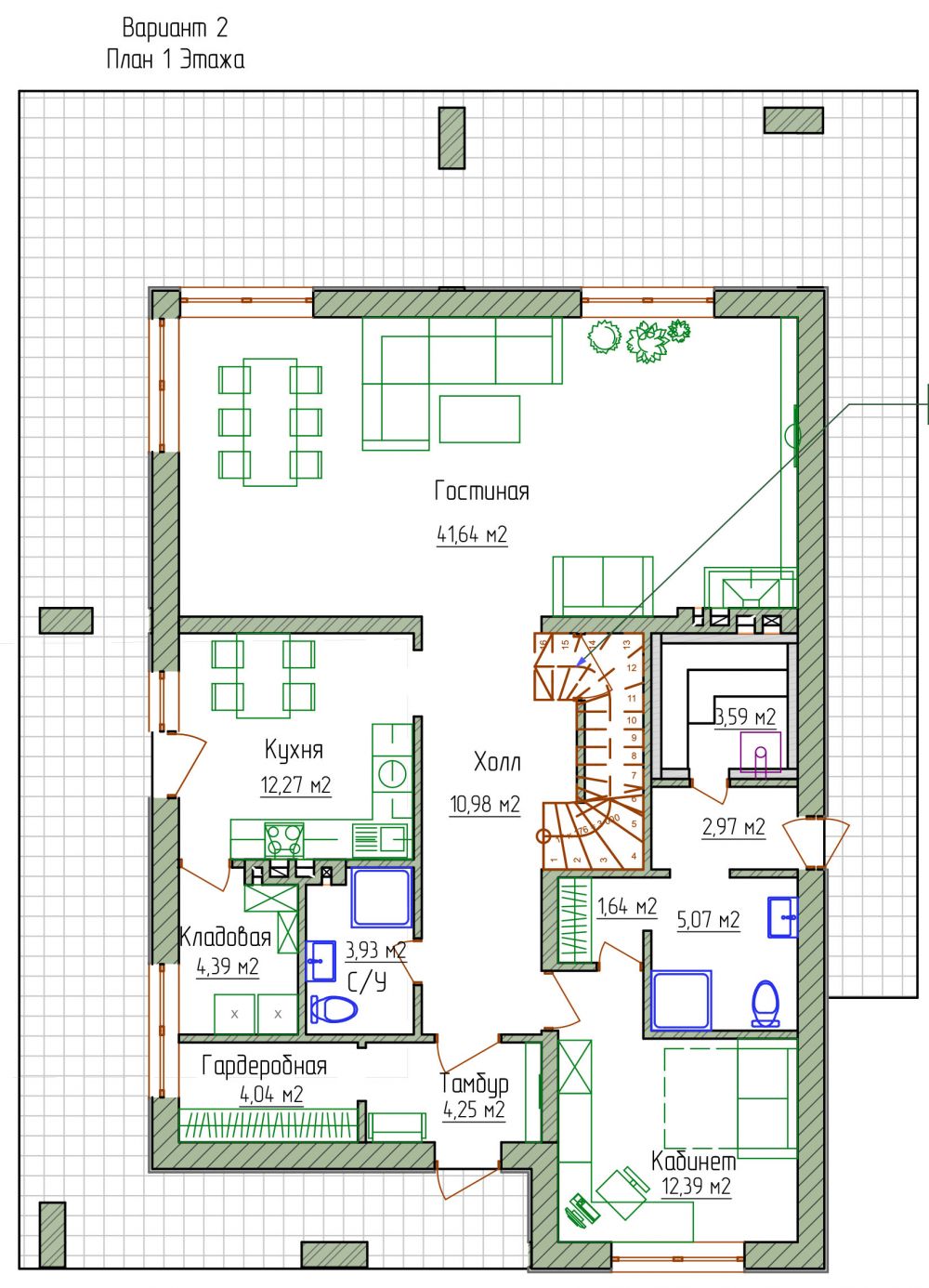 Пакет Минимальный - это архитектурный проект, обьема информации которого достаточно для согласования в местных органах власти и строительства профессиональными бригадами.