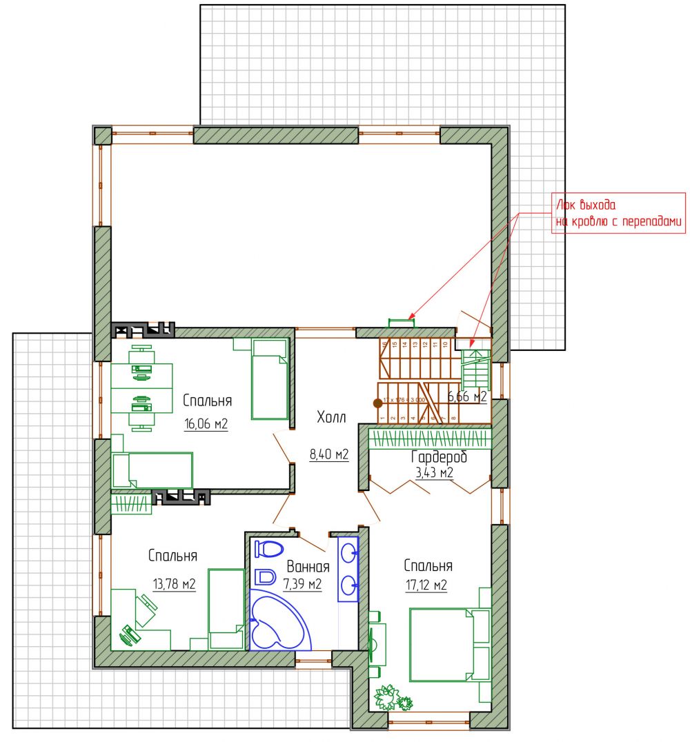 - Здание запроектировано двухэтажным с устройством плоской совмещенной кровли;